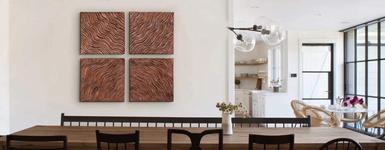 Bộ 4 Tranh treo tường phòng khách gỗ đẹp hiện đại lượn sóng – TKG08
