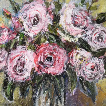 Tranh sơn dầu hoa Lọ hoa hồng phấn vẽ tay do hoạ sĩ Tony Trần thực hiện. Bức tranh sơn dầu hoa làm điểm nhấn tươi mới trang trí làm đẹp cho phòng khách, phòng ngủ, hoặc sẽ là món quà tặng độc đáo cho những dịp đặc biệt như sinh nhật, khai trương, tân gia, kỷ niệm ngày cưới.