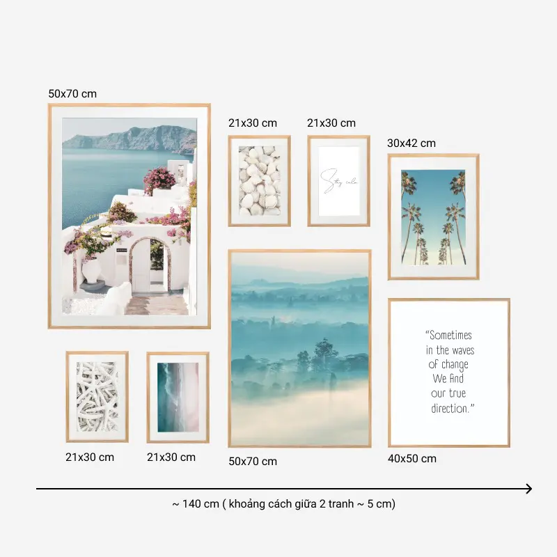 Vacation Lover – Bộ 8 tranh khung kính gỗ sồi treo tường