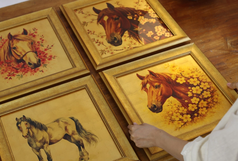 - Bộ sưu tập 09 dáng ngựa dát vàng mỹ thuật, thiết kế trên nền nhung đỏ / đen / xanh sang trọng.