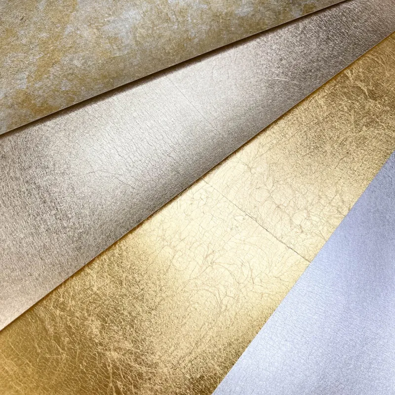 Khi ánh sáng phản chiếu, lớp vàng hoặc bạc như đang “thở” – khiến bức tường trở thành một không gian nghệ thuật sống